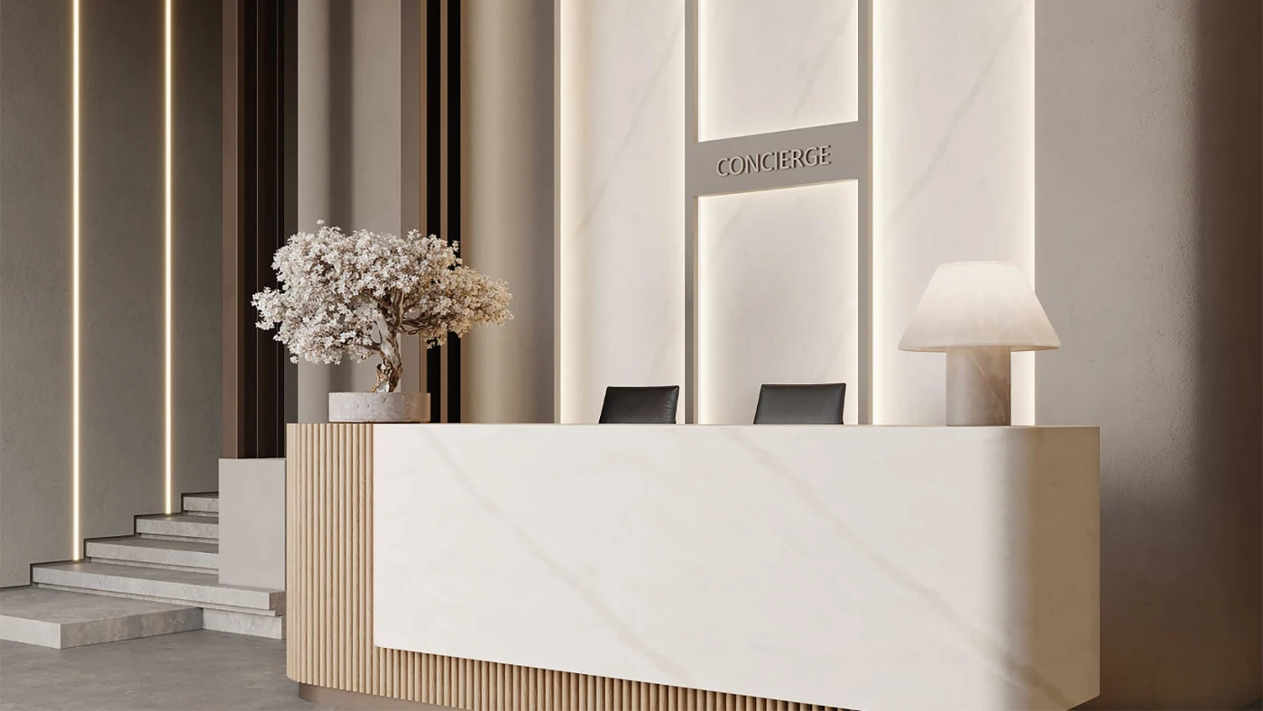 Kurumsal mekanların giriş alanı, markanın karakterini ve profesyonelliğini yansıtan kritik noktalardan biridir. Örneğin resepsiyon alanları, ziyaretçilerin markayla ilk fiziksel teması kurduğu alandır. Akrilik banko ve resepsiyon tezgahları sundukları pürüzsüz ve modern görünümle markanın yenilikçi, güvenilir bir imaj sergilemesine yardımcı olur. Akrilik yüzeyler yalnızca bir tezgah oluşturmaz, aynı zamanda kurumun logosu, renkleri, vizyonuyla uyumlu hale getirilebilen estetik araçlara dönüşür.